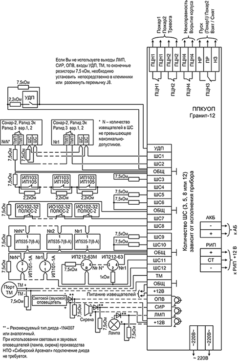 Сибирский Арсенал Гранит-12 Охранные приборы на 10 и более шлейфов в Южно-Сахалинске